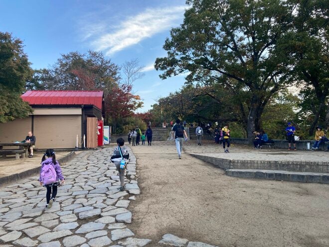 30〜40分で途中の稲荷山まで到着し、ベンチで景色を眺めながら水分補給。