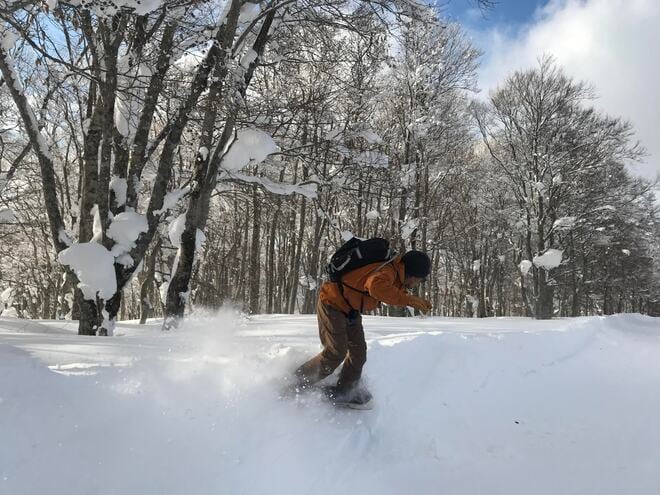 雪質がパウダースノーからだんだんと春の雪へと変わりつつあるこの時期にもピッタリな、僕がハマっている遊びを紹介します。楽しさを提供してくれる手軽なスノーギア、それが「スノースケート」です! 今回はその魅力についてお伝えしたい。