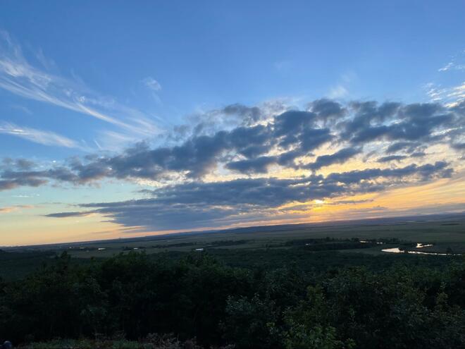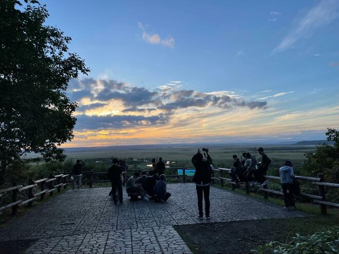 1つ目が「細岡展望台」だ。湿原内を蛇行しながら流れる釧路川に加え、湿原に沈む夕日を見られるスポットとして有名だ。駐車場から徒歩10分ほどで到着するが、道が舗装されており、アクセスしやすい。