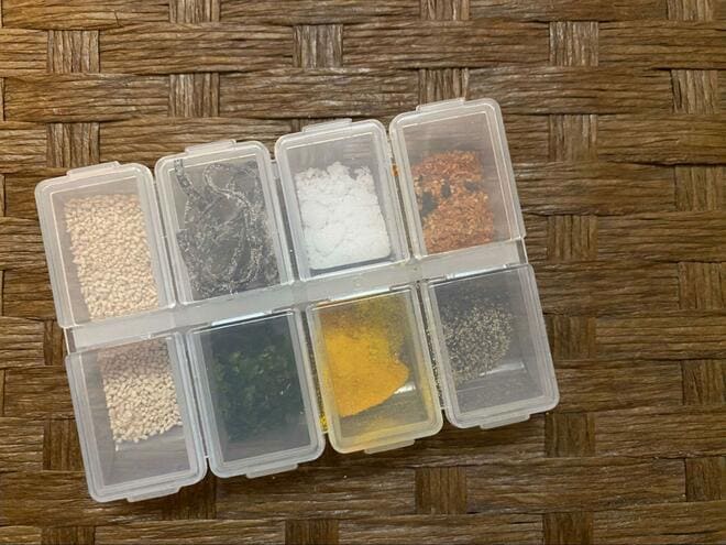 薬ケースは他にもたくさんの種類が販売されているので、ちょうどいいサイズや入れられる調味料の数などで選ぶのもあり。また薬ケースだけでなく、ビーズケースでも代用できるだろう。