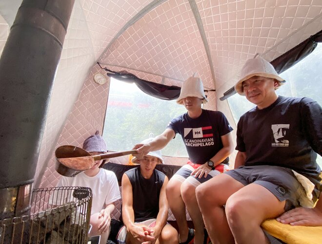 広い座面なら横になることもできるし、高さもあればウィスキング(枝葉を束ねたもので体を叩いて血行促進する)も可能だ。