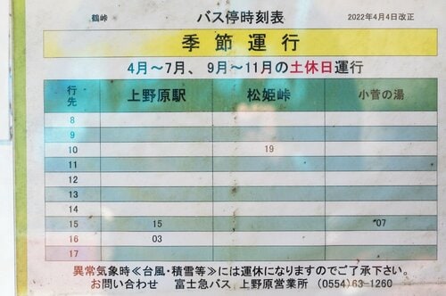アクセスの悪さもネックです。公共交通機関は季節運行で、本数も非常に限られているので出発前によく調べてみましょう(だからこそ、静かな山だとも言えますが……)。例えば、松姫峠の場合、下り用の便はありません。もし、北側の小菅村の温泉を目指して歩いて降りる場合、下りにはそこそこ体力と時間がかかることを計算に入れておきましょう。マイカーの場合、松姫峠に停めて大マテイ山山頂で折り返してピストンするのが楽です。