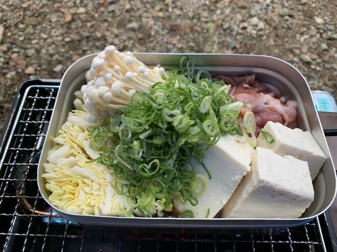 野菜と肉をメスティンで煮るだけの簡単調理だ。調理が苦手な方でもおいしくできるので、キャンプでのすき焼きをぜひ試してほしい。もちろん、締めのうどんも堪能しよう。節約レシピだが、我慢せずに食事を楽しむのが筆者流の節約グルメである。楽しむことも忘れてはいけないのだ。