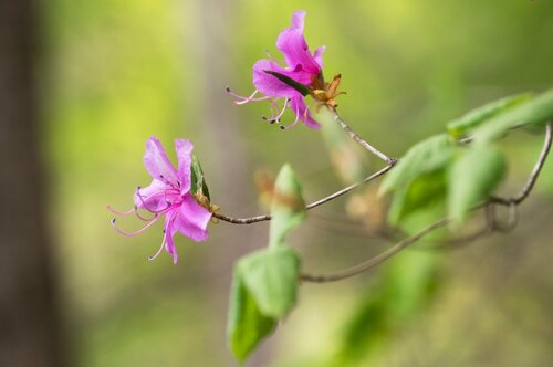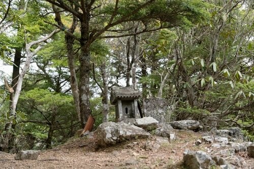 その先は、ミツバツツジがちらほら咲く中をさらに登り続け、鎖の張られた岩場を通過して御岳神社が現れたら、山頂まではあと少しです。