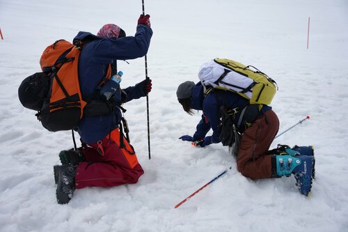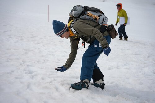 そんないざという時のために行われたのが「ビーコン宝探し」。雪に覆われたゲレンデの一画にビーコンを埋め、参加者が自ら見つけ出すというゲーム形式で実践的な動きを身につけていくというもの。