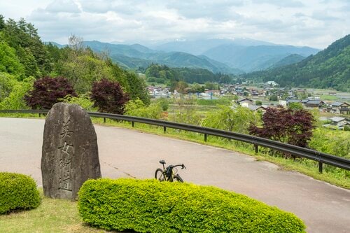 「美女街道」という名前に惹かれ、久々野経由で国道361号線に向かいました。田園地帯を抜けたら途中にある「美女街道展望台」で景色を眺めながらひと休み。乗鞍岳は相変わらず雲のなかでした。
