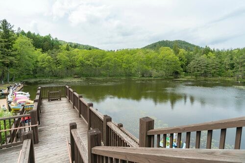 そのまま車道を下っていけば高山の街へと戻れるのですが、Uターンして美女ヶ池へと向かいました。ちょうど日曜日ということもあってか、山中の池の畔の公園は、釣り糸を垂れる釣り人、カップルやファミリーなど、老若男女でおおいに賑わっており高山市民憩いのスポットとなっているようでした。