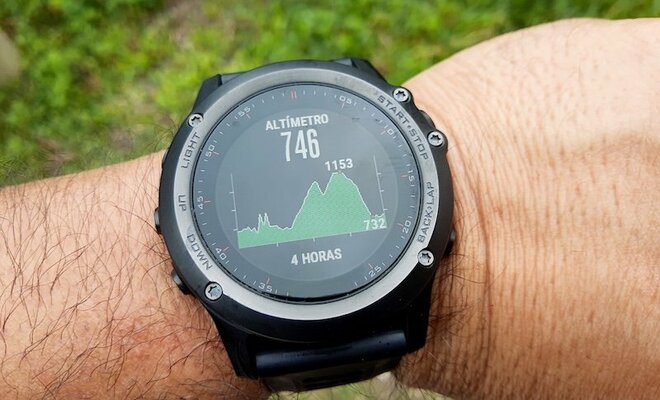 時計に内蔵された圧力センサーで気圧を測定し、それを標高に換算して表示する機能です。登山中に現在地の標高を把握できるため、地図と照らし合わせて位置確認をしたり、目標地点との高低差からペース配分を考えたりするなど重要な情報を得ることができます。