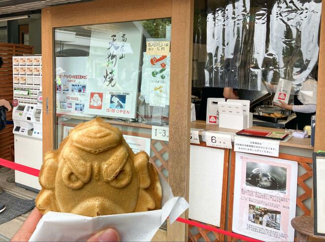 そこでぜひ食べたい名物が「天狗焼き」だ。たい焼きのような和スイーツで、高尾山が天狗信仰で知られていることから、烏天狗をかたどっている。
