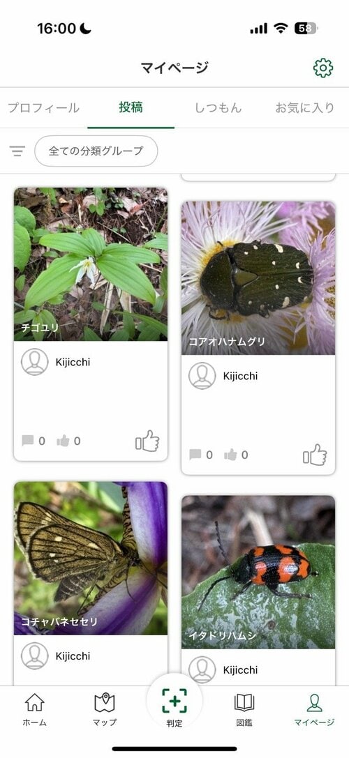 2つ目の「同じアプリを使う人たちと繋がることができる」に関しては、他の投稿者がどんな場所でどんな生き物を見つけたのか知ることができるので、これから訪れる場所の生物情報を得ることができます。また、進化がすごいとはいえ、AIは100%正確ではありません。人と繋がることができるアプリなら、他の人に正解を聞くことができたり、間違いを正してもらうこともできるため、より正確に種名を知ることができます。