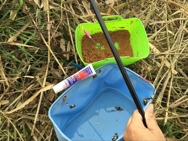 竿は2〜4mほどの、延べ竿が使いやすい。道糸は細めのナイロンでよく、小さな棒ウキとその下に軽いオモリを付け、針を結ぶだけのシンプルな仕掛けだ。オモリは最初小さめを付け、流れが速いポイントや風がある時は少し重くして調節するとよい。基本は「流れに入った時にウキが立つこと」である。タナ(魚がいる、あるいは魚がエサを食べる水深)は釣り場の状況に合わせてウキの位置を上下に調整して探ってみるのがよい。