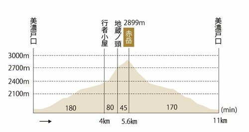 美濃戸口から林道を歩き、美濃戸山荘の分岐から南沢を登っていくと行者小屋。ここまでの道のりはきつい勾配もない。余力を残して1日目はここに泊まり、翌朝早めに出発する。地蔵尾根は最初は樹林帯が続き、徐々に斜度がきつくなると急な階段や鎖場が出てくる。急登を上り詰めるとお地蔵さまがたたずむ地蔵ノ頭の稜線だ。