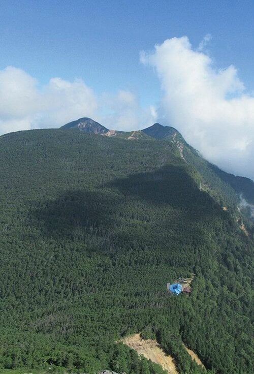 赤岳の北峰から下りて稜線を進み、地蔵ノ頭の先にある横岳は鎖場やハシゴのある岩稜帯。ここは気を引き締めて進みたい。あとは展望のよい砂地が続き、硫黄岳山荘から先は点々と置かれたケルンに導かれながら硫黄岳の山頂へ。ここでしばし爆裂火口跡を鑑賞する。この先の夏沢峠は南八ヶ岳と北八ヶ岳の境にあたる場所。峠を越えると北八ヶ岳らしい苔の生えた樹林帯へと山の雰囲気が変わっていく。