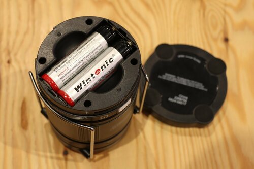 乾電池は単3形アルカリを3本(別売)使用、充電池はリチウムイオン電池が2本内蔵されています。使用時間は、アルカリ電池でモードにより最大約4時間(White/High) ~約23時間(Warm/Low)。リチウムイオン電池では同じく、最大約5.5時間(White/High)~約33時間(Warm/Low)となっています。