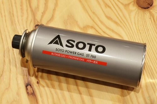 火力に関しては、ガス缶の性能も関係してきます。SOTOのガス缶には、「パワーガス」と「レギュラーガス」などがありますが、オールシーズンに対応した「パワーガス」がおすすめです。「レギュラーガスですと、寒い時期には火力が弱い、火がつかないなどの問題が生じる心配がありますので、パワーガスを備蓄しておきましょう」(中山さん)