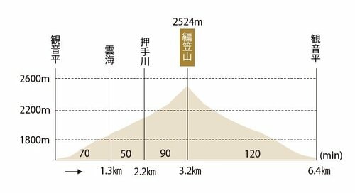 ルート:観音平 → 雲海 → 押手川 → 編笠山(往復)