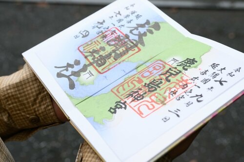 また、薩摩国一の宮となる指宿市の「枚聞神社」と、大隅国一の宮の霧島市にある「鹿兒島神宮」は、現在、コラボ企画の御朱印を発行している。2つの御朱印を並べると鹿児島県の地図になり、それぞれの神社がある場所に鳥居マークが入っている。日本百名山がある2つの市をめぐりながら、薩摩・大隅両国の一の宮を参拝し、今だけの御朱印をいただくのもいい思い出になる。