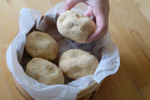 蒸したては生地がふんわりもちもちとして格別のおいしさ。時間が経つと少しかたくなるので、なるべく早めに食べましょう。