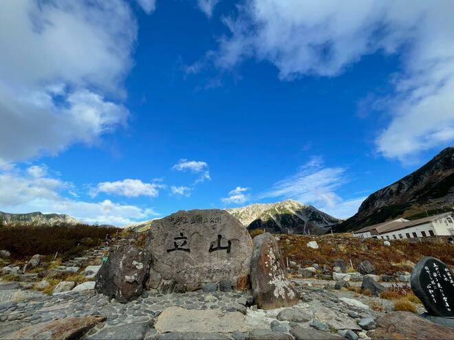 室堂ターミナルに到着すると、空気は一段と冷たく、秋の澄んだ空が広がっている。標高2,450mの地に立つと、計算上の外気温は街中よりも約10℃低くなる。この日は予報に反して風もあり、体感温度で15℃は低いのではないかと感じた。