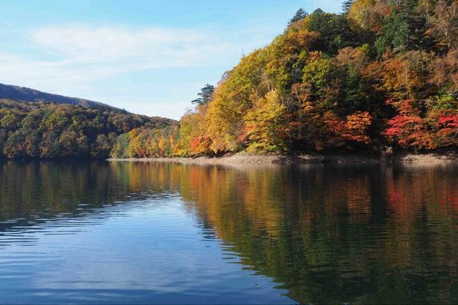 木の葉が少しずつ色づき始める初期の紅葉から、終盤の落葉に至るまで、訪れる時期によって移ろう多彩な色合いを堪能できるのも、丸沼の紅葉ならではの魅力である。