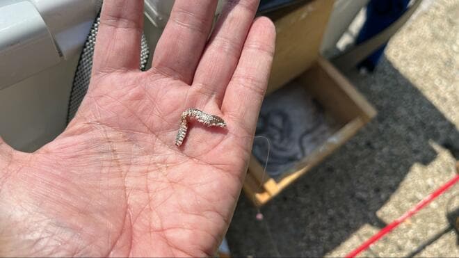 エサはアオイソメが定番。虫エサが苦手な場合は、人工のイソメもあるので利用したい。2〜3cmにカットして使うと針掛かりがよい。長いままだと針掛かりしにくい。