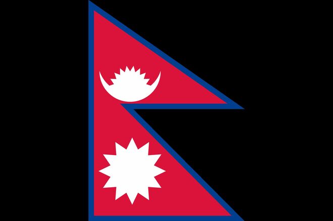 国旗も世界唯一の形をしており、2つの三角形を重ねた独特なデザイン。形はヒマラヤの山並みと二大宗教(ヒンドゥー教と仏教)を表している。