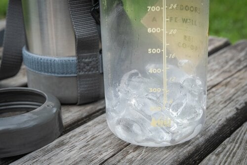 そして検証開始から約24時間後。サーモシェルからナルゲンを取り出すと、まだ氷が残っていました!