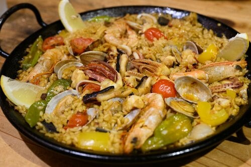 最後の締めの鯛茶漬けをパエリアに変更できるというので、せっかくなのでバルらしいパエリアをセレクト。エビやタコ、アサリなどの魚介がたっぷりの、指宿らしいパエリアは大満足の味わいだ。なお、夕食付きプランは完全予約制なので、宿泊予約と一緒に申し込みを。