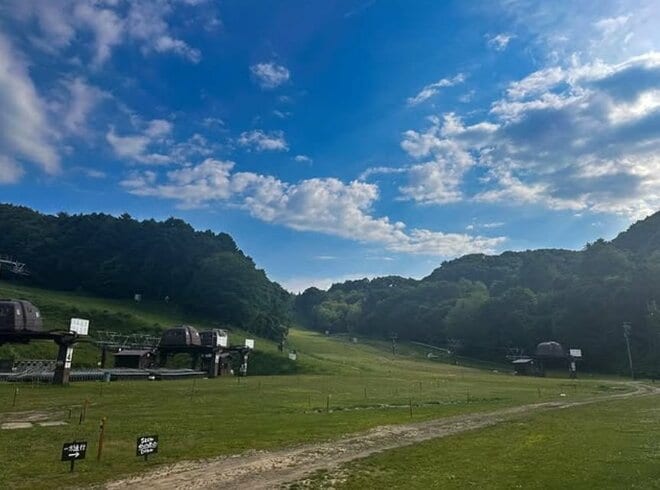 キャンプと共にアクティビティを楽しむなら「パラダキャンプ場」がおすすめ。佐久平スマートICから車で10分以内という好アクセス。冬場はスキー場として営業しており、オートサイト一帯の草原が山腹まで広がる。風の通りがよく、残暑の季節でも涼しく過ごせるだろう。