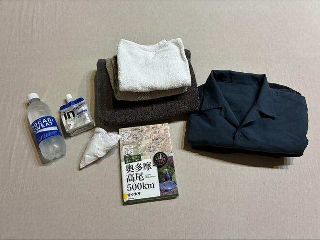 今回走る三沢峠周回トレイルは、京王線・高尾山口駅からスタートし、南に位置する西山峠、三沢峠を経由し駅に戻るコースだ。距離はおおよそ10km前後で、初心者向けのトレイルランコースに分類される。持ち物は以下の通り。