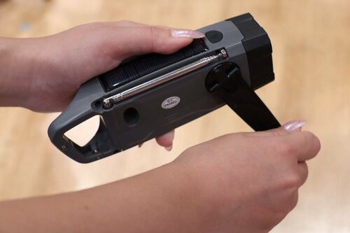 手回し充電は、背面側に付いているハンドルをぐるぐると回すことで充電が可能です。また、ソーラー充電は上面にあるソーラーパネルで太陽光からのパワーで充電できます。ただし、いずれもフル充電までけっこう時間がかかるので、緊急充電用として考えたほうがよさそうです。