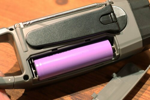 防災用途を考えると、一番に気になるのは電源(バッテリー)でしょう。「エマージェンシーカラビナラジオ」では、容量2,000mAhのリチウムイオン電池を搭載していて、フル充電の状態でラジオなら約13時間、懐中電灯なら約7時間使えます。