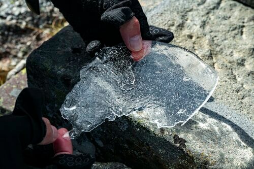広い山頂は、日本三大急登としても有名な「黒戸尾根」からや「鋸岳」からのルートも集います。展望は素晴らしく、富士山や遠く北アルプスの山並みなど、枚挙できないほどの山々の眺望を楽しめました。祠や石仏、石碑など、古くからの信仰の対象となっていたことがうかがえます。登頂時、水が溜まっていた場所には氷が張っていました。