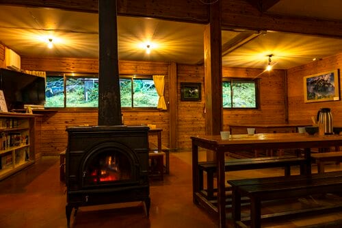 夕食が終わると同席の登山者たちと歓談のひととき。我々と同じ2座を2日間で登る計画の人も多いです。ルートや天気の話から、今まで登って印象的だった山の話などでおおいに盛り上がっていました。