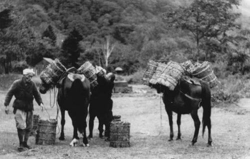 車が入れない山中でありながら、生鮮品をふんだんに使ったおいしい食事を食べられるのは、週に数回、従業員が食材を背負って歩荷(荷上げ)をしているからだ。歩荷ルートとしてメインで使っているのは、三斗小屋宿跡から登る約80分のコース。1回の歩荷で1人当たり30~40kgほどの荷物を背負っている。戦前までは馬を使って荷上げをしていたが、戦争が始まると飼料の確保が難しくなって馬を手放し、以後はずっと人力での歩荷を続けてきた。