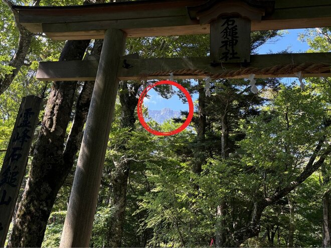 ポストに登山届を投函し、いざ入山! 最初は下りが続き「せっかくロープウェイで昇ったのに下ってしまってもったいない」と心の中のケチな自分がザワザワしていると、鳥居が見えてきた。