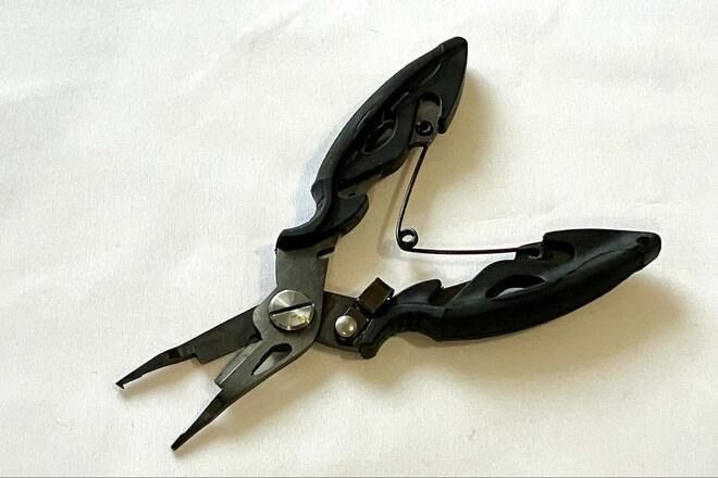 竿とリールさえあればカサゴ釣りは始められるが、実際にやってみると「これがあると安心だ」と感じる道具もある。ひとつはプライヤー(針外し)。カサゴはエサを丸飲みしてしまうことが多く、針が喉の奥に掛かってしまう場面がある。そんなとき、先端が細いプライヤーがあれば、手を傷つけずに安全に針を外すことができる。プライヤーで糸を切ることもできるので、仕掛けを変えたりするときにも便利だ。