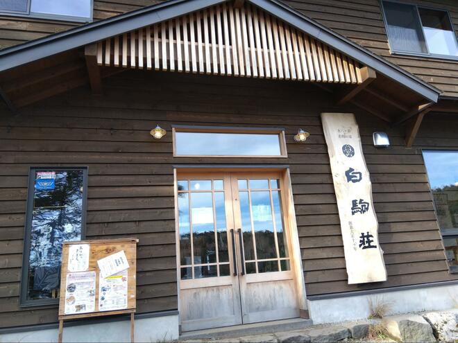 麦草峠駐車場 (0:00) → 麦草ヒュッテ (0:05) → 白駒荘(1:10) → にゅう(2:30) → 白駒荘(3:40)→麦草峠駐車場(4:10)