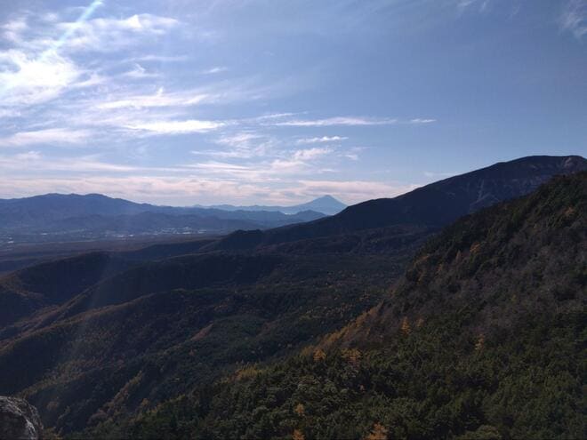 白駒池のにゅう分岐から山頂に至る道は、まず、苔に覆われた林と美しい樹林帯の中を歩く。ときおり視界が開け、紅葉に染まる山肌や遠くの稜線が目に飛び込んでくる。最後に待つ岩場を登りきれば、標高2,352mの「にゅう」の山頂に到着だ。山頂は岩場になっており、あまり広くはないが、360度のパノラマ絶景が広がる展望スポット。南八ヶ岳や蓼科山、浅間山に北アルプスまでも見渡せる、息をのむような眺望が待っている。