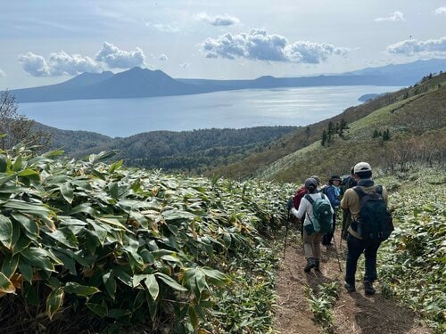 札幌から1時間圏内とアクセスもよく、眼下に美しい湖の景色が広がるイチャンコッペ山。ツアーでの帰りは温泉で疲れを癒し、汗を流してさっぱりした状態で帰ることができました。半日ほどで往復できる低山でありながらも、絶景の支笏湖を囲む山々を望みながらの山時間。参加者の顔は満足気な表情にあふれていました。
