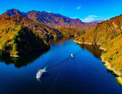新潟県魚沼市にある奥只見湖は、奥只見ダムによって誕生した人工湖。江戸時代にこのエリアで銀が採掘されていたことから「銀山湖」とも呼ばれている。春から秋にかけては湖で遊覧船が運行し、とりわけ秋は周囲の木々が赤や黄色に染まった紅葉が美しい。見頃は10月下旬から後半にかけて。これからまさに紅葉の盛りをむかえる。