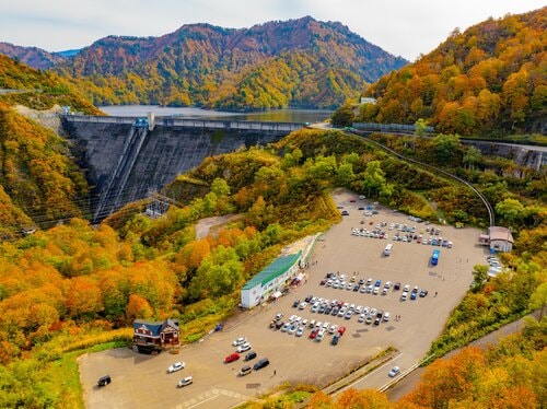 奥只見湖は周囲を山が取り囲む自然豊かなロケーション。秋はその山々がすべて紅葉に染まり、遊覧船から絶景を眺めることができる。秋は2つのコースを遊覧でき、「奥只見周遊コース」は40分かけて奥只見湖をぐるりと周遊しながら見どころをあますことなくめぐることができる。スタートした乗船場に戻ってくるので、マイカーユーザーにおすすめのコースだ。2025年の運行は11月8日まで。