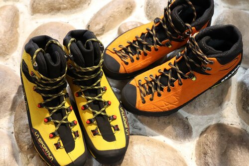 オールラウンドに履くなら、基本的には硬めの靴が向いています。「ソールが硬いとフラットに立てるので、足の筋力の消耗も減らせますし、安定感も高いです」(難波さん)。そして、おすすめに挙げてくれたのが、LA SPORTIVA(スポルティバ)の「トランゴ アルパイン GTX」と、SCARPA(スカルパ)の「ゾディアックテック GTX」という2モデルです。