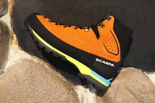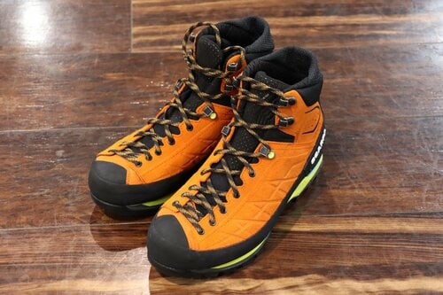 もうひとつが、スカルパの「ゾディアックテック GTX」です。スカルパは、世界的にとても知名度が高いイタリアの老舗登山靴ブランド。こちらも、岩稜帯やアルプス縦走などでもハードに使えるシューズです。