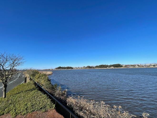 湖の西側に位置する「手賀沼親水広場」は、水辺に近い位置から湖を眺められる散策スポットである。隣接する「水の館」には展望台があり、手賀沼全体を見渡すことができる。天気がよい日には富士山の姿が見えることもあり、サイクリングの途中で立ち寄れる。
