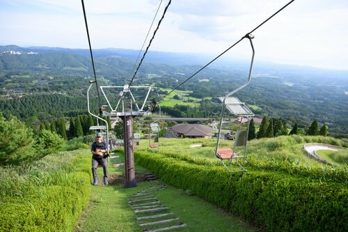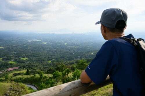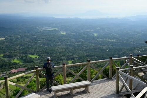 霧島温泉市場でひと息ついたら、今度は「霧島神話の里公園」へと移動。ここにはさまざまなレジャー施設が揃っており、遊覧リフトで山を上がると展望広場から霧島の山々や錦江湾、桜島を一望できる。広場には、山が見えるほうに坂本龍馬とその妻のお龍(おりょう)の、海が見えるほうには西郷隆盛の顔出しパネルが設置されており記念撮影も楽しい。