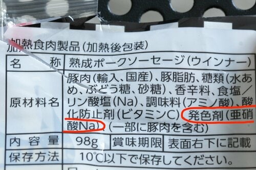 また、亜硝酸ナトリウムには殺菌以外の効果もある。肉の赤色を保つ効果と、ケモノ臭さを抑えて好ましい匂いを与える効果だ。ハム・ソーセージに特有の熟成したような風味(塩漬フレバーと呼ぶ)は亜硝酸ナトリウムによるところが大きいのだが、それを好むかどうかは人それぞれだと思う。加熱した肉本来の風味とは違ったものになるからだ。