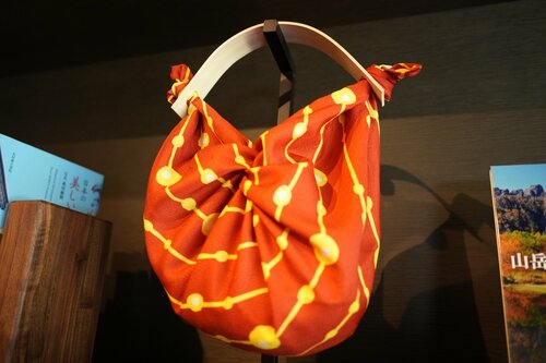 温められた木材に少しずつ力を加えていくことで、徐々に木は曲がっていき、自分だけのバッグハンドルが出来上がる。後は両端に風呂敷を通すことで、バッグは完成。自分だけのオリジナル作品には自然と愛着が湧いてくることだろう。