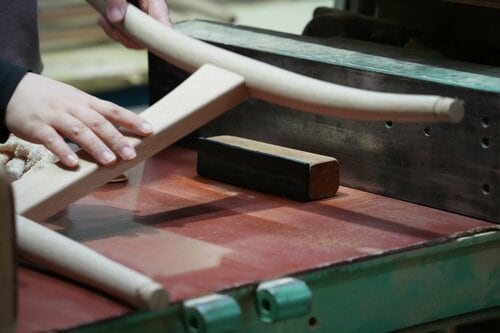工場見学のツアーでは、家具が完成するまでの工程を実際に職人が作業している様子を見ながら回ることができる。やはり、最大の見どころは“曲木”のパート。厚く、硬い木材が、みるみる曲がっていく様は驚きのひと言。この地で紡いできた伝統と技術を間近で見ることができる贅沢な体験となることだろう。