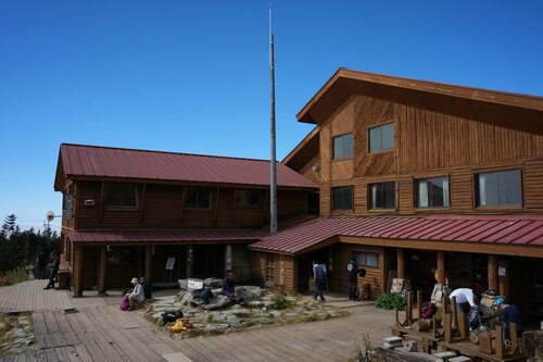 樹林帯を抜けた先、森林限界との境界線に建つのが西穂山荘。冬季でも通年で営業している登山者にとっては、ありがたい存在。日帰り登山であっても休憩や食事に利用することもできる。